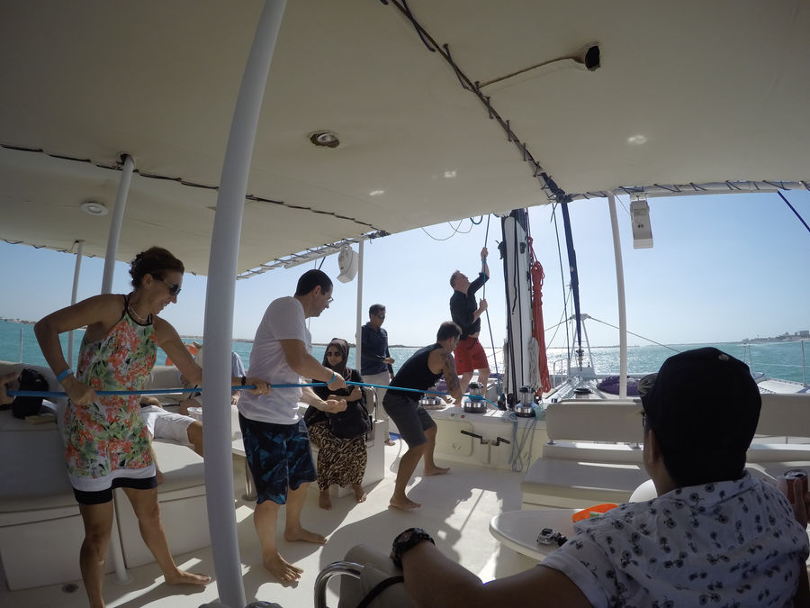 After settling in and catching up properly with Jamie, Michelle and fussing over the dogs, I set off on one of the best night's sleep I'd probably had in a week or two. If I hadn't set myself an alarm to get up, it's a dead cert that I probably wouldn't have emerged until late afternoon! We had a relaxed morning and then went off on our bottomless booze catamaran trip from the Intercontinental hotel over to one of the small islands and back. It was great fun - what's not to love about endless bubbly, good music, sunshine, a dip in the sea and great company! We ended the night in the Belgian beer cafe by which point Michelle and I were fairly sozzled so we headed home in a taxi and I managed to promptly fall asleep to Jamie's delight where he could capture it all on his phone and send a photo to my mum to have a good laugh! There was no hanging about when we got home and I was happily tucked up in bed by 9pm, out like a light!