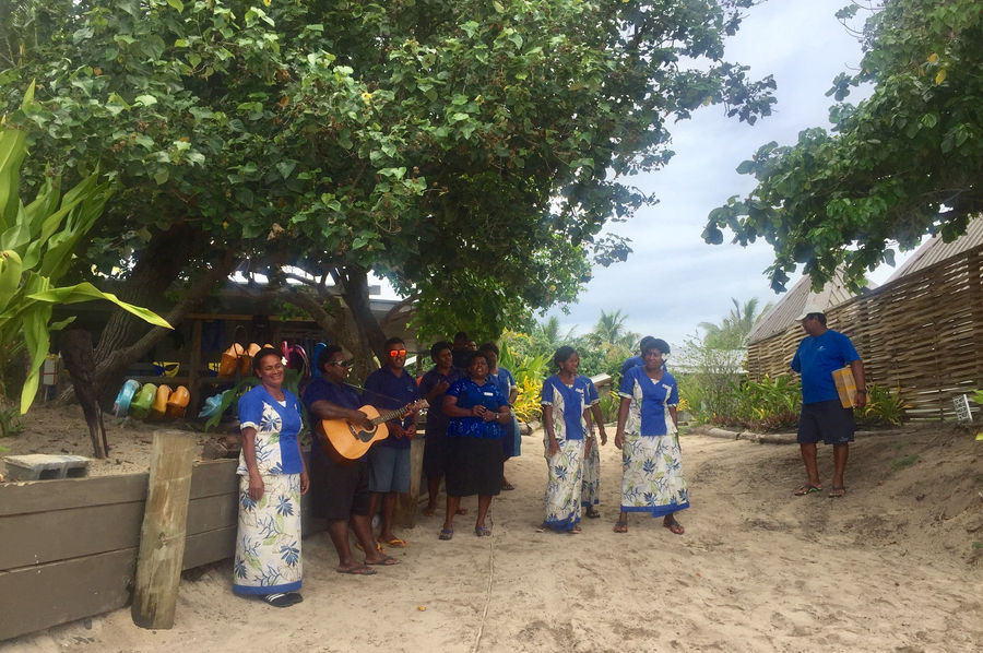 When we got off the main boat into a small boat to take us ashore, the staff from South Sea were stood on the sand singing and clapping along to the guitar to welcome us.